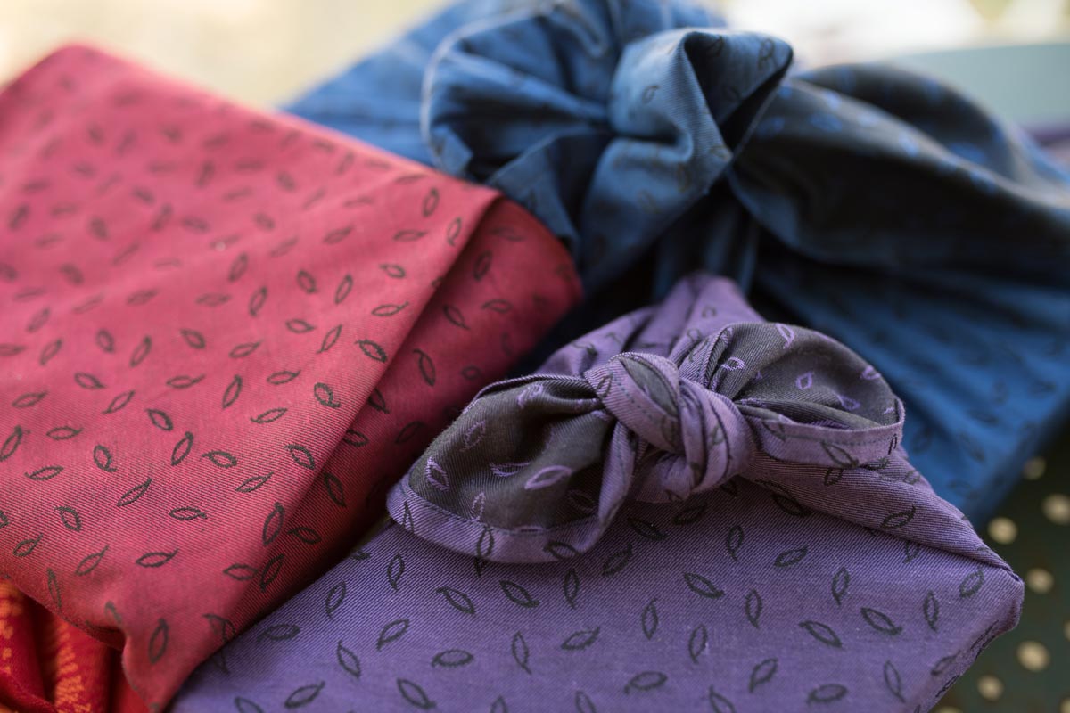 Le Furoshiki est un art ancestral japonais qui consiste à emballer différents objets dans un carré de tissu traditionnel noué de différentes manières.